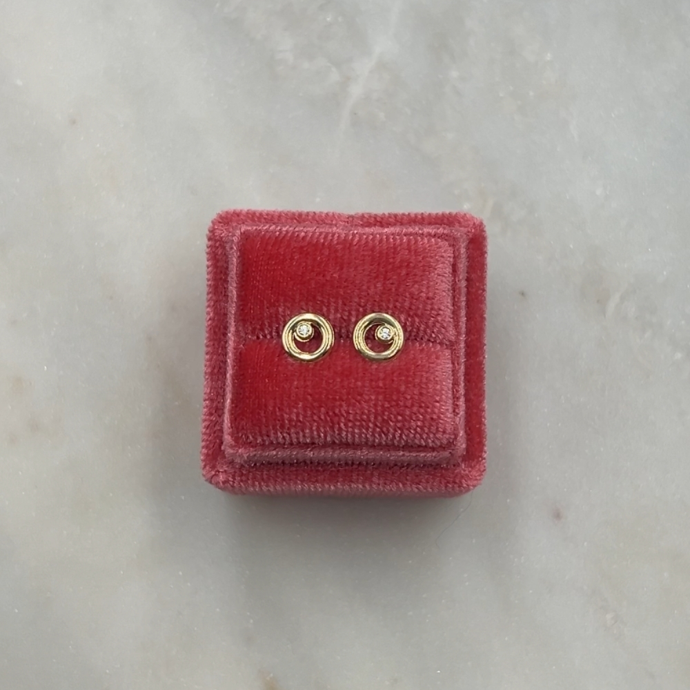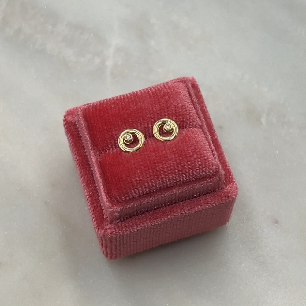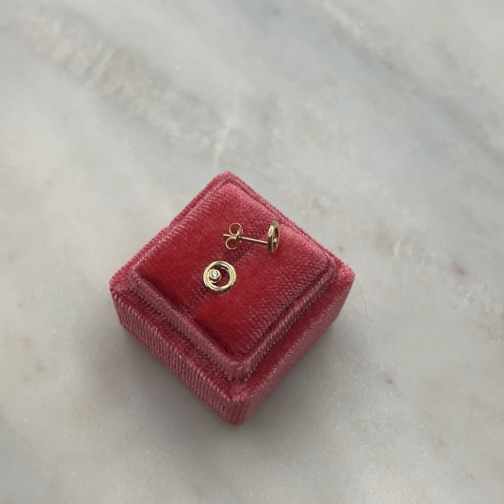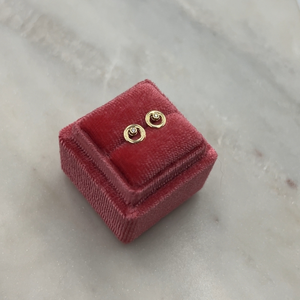 Złote kolczyki wkrętki na sztyft na zatyczkę złoto 585 14k cyrkonia kółeczka kółka z cyrkonią okrągłe cyrkonia z oprawą