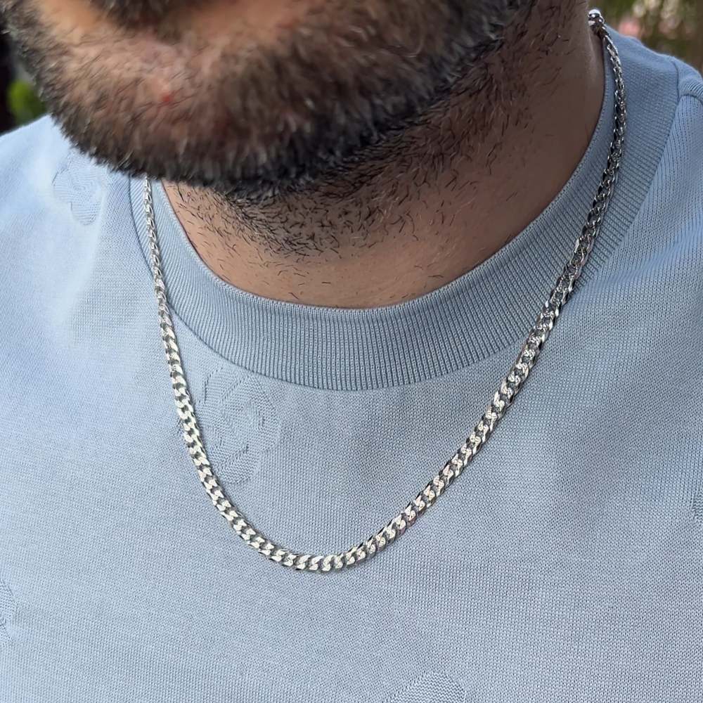 Srebrny łańcuszek łańcuch srebro rodowany srebro 925 pancerka diamentowana grubsza modny splot modny model prezent dla niego dla mężczyzny męski 50cm