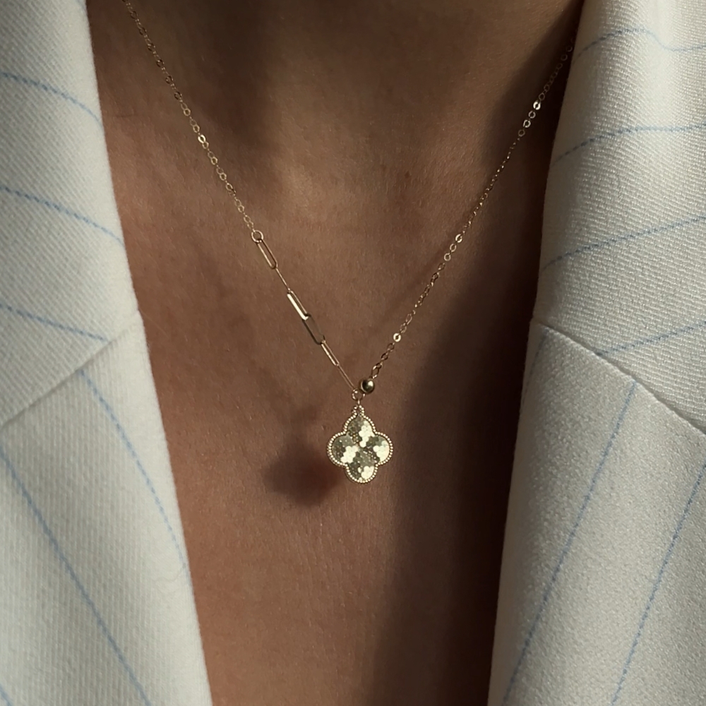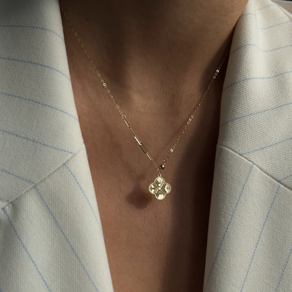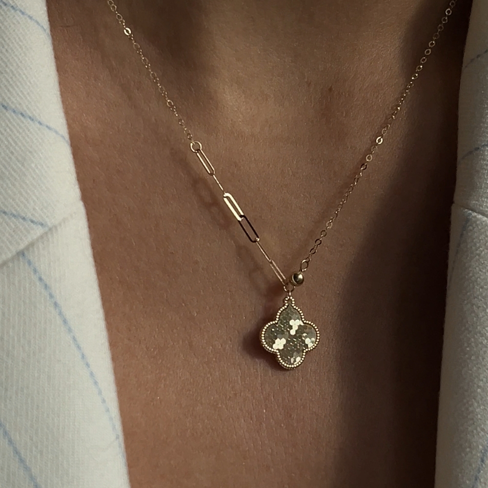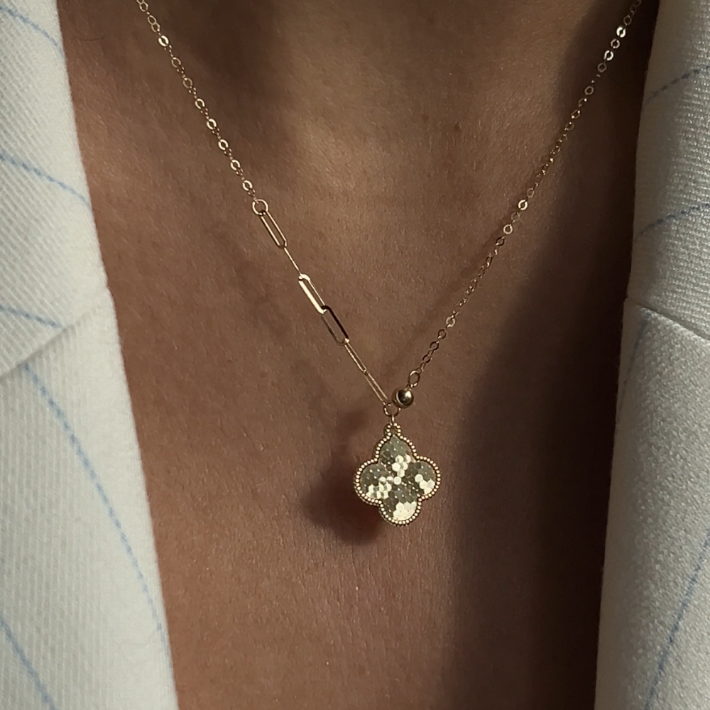 Naszyjnik złoto 585 (14kt) koniczyna marokańska efeftownie lśni efekt brokatu