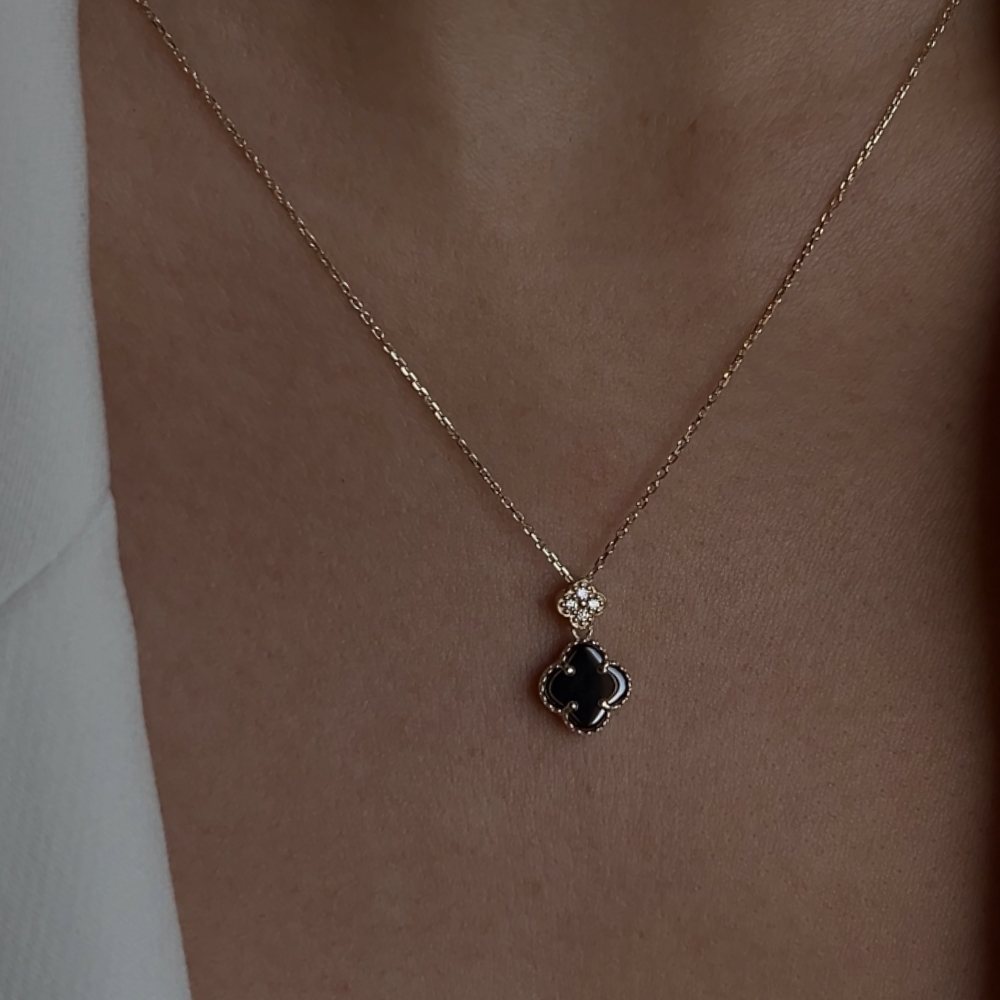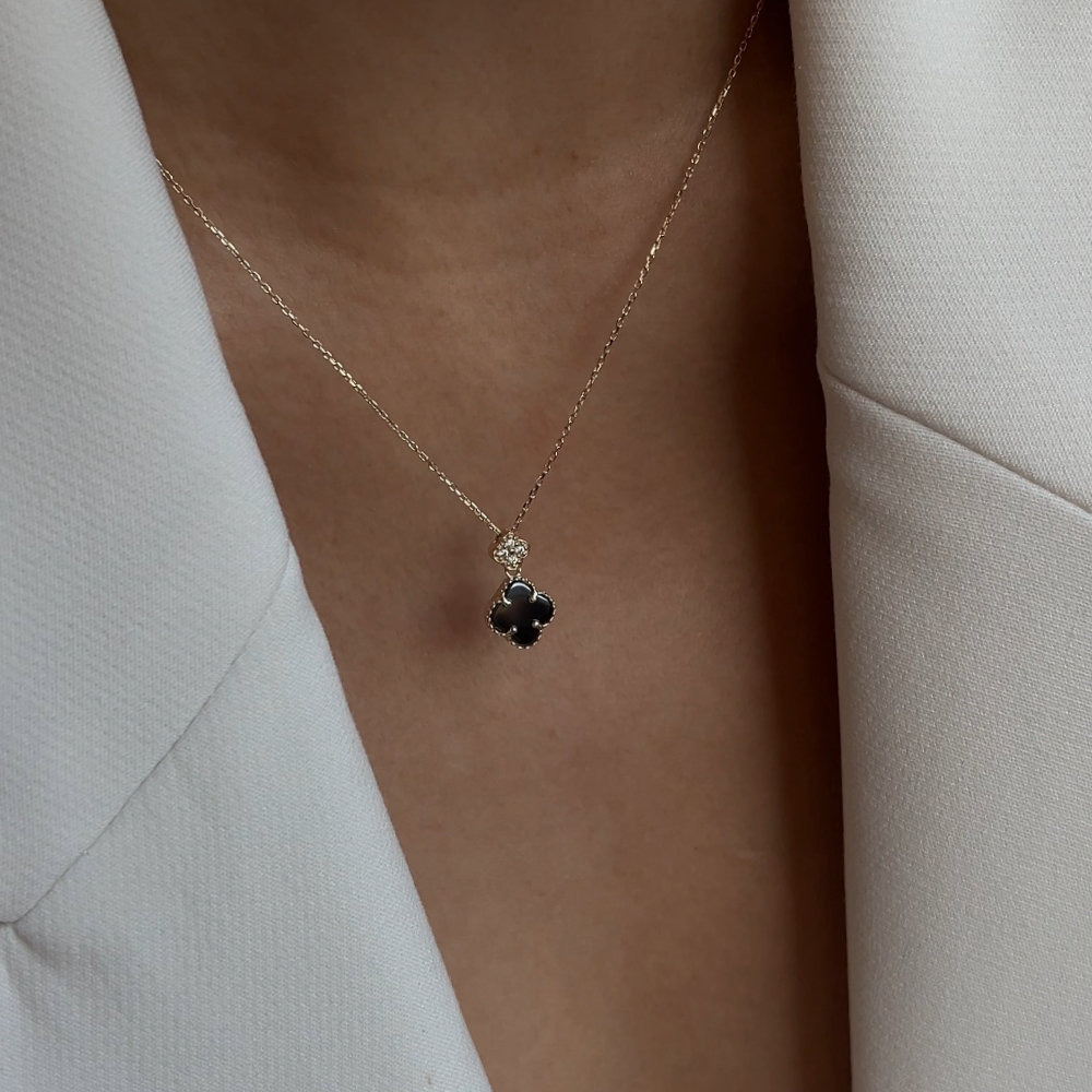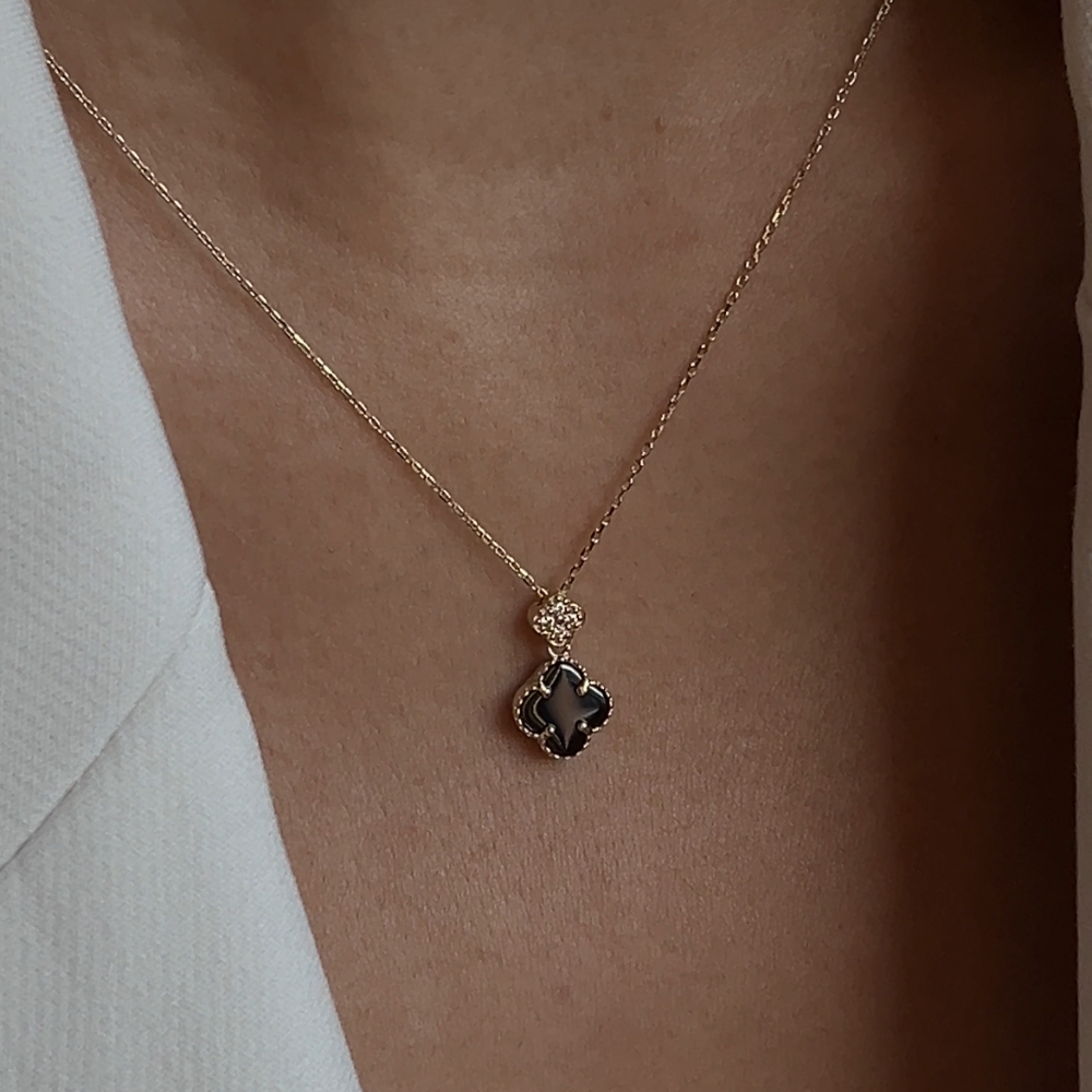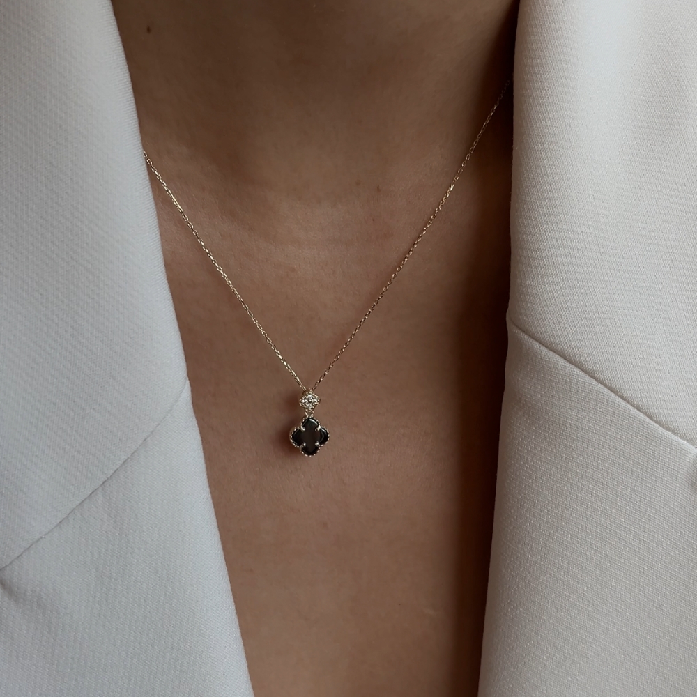 Naszyjnik złoty czarna koniczynka marokańska fiore nero No. 02