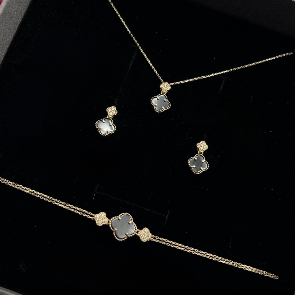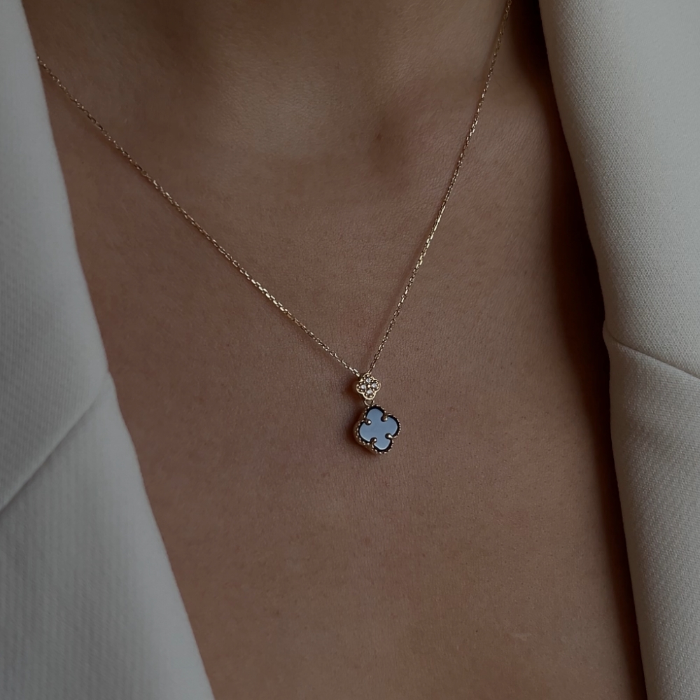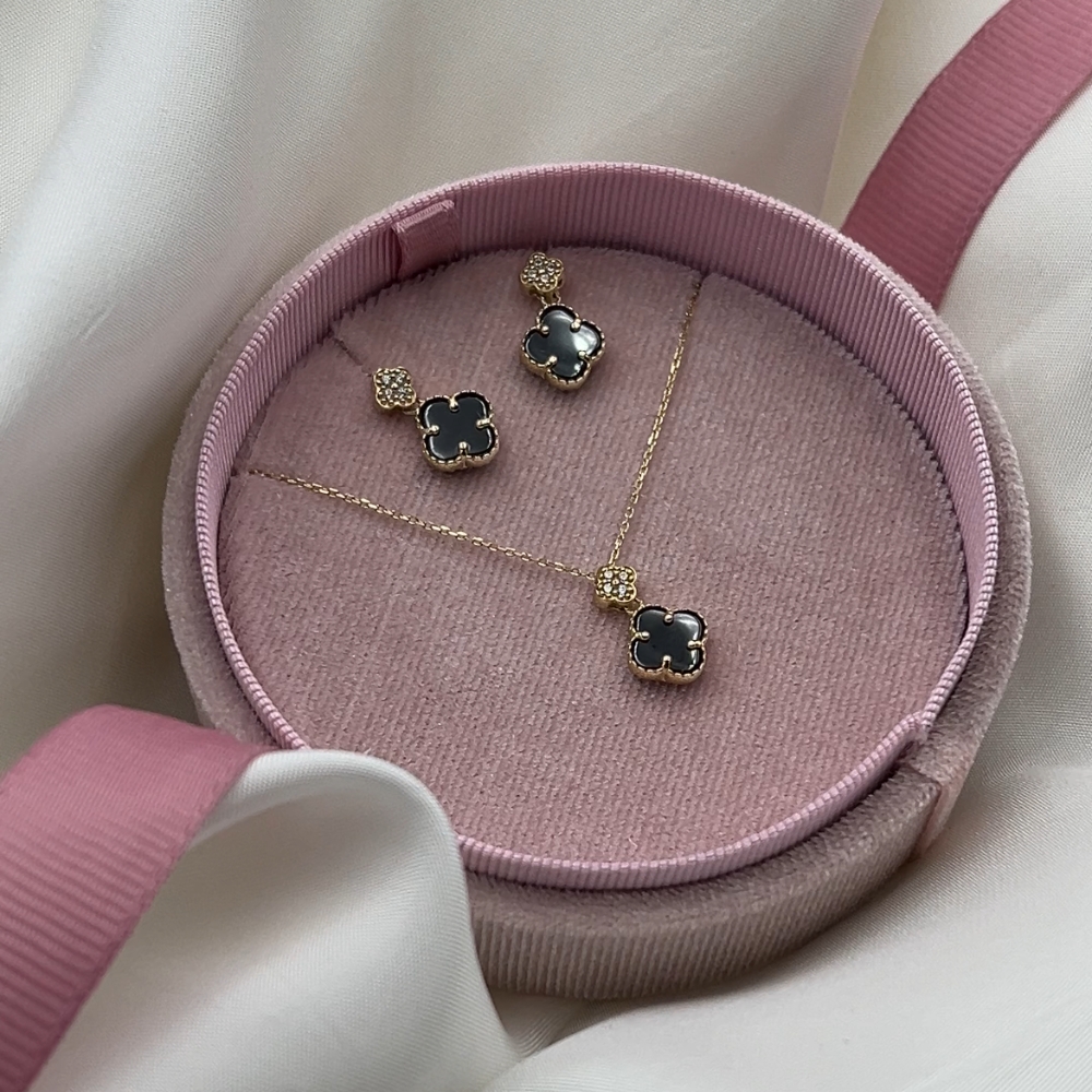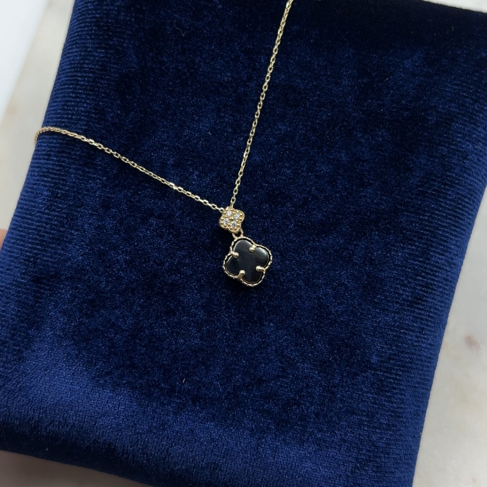 Naszyjnik złoty czarna koniczynka marokańska fiore nero No. 02